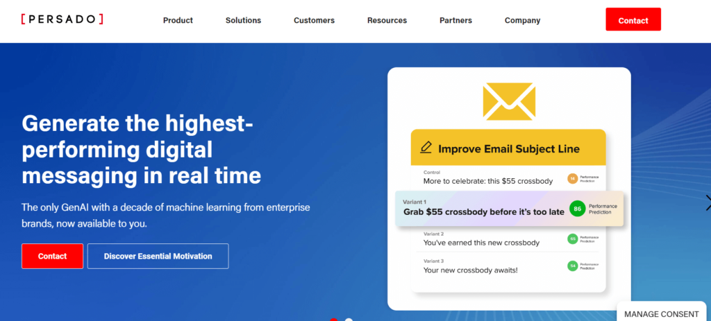 Persado is a marketing language cloud that uses artificial intelligence to optimize the language used in marketing communications. This advanced platform leverages machine learning and natural language processing to generate and test persuasive language that enhances engagement across multiple marketing channels, from email to social media and beyond.