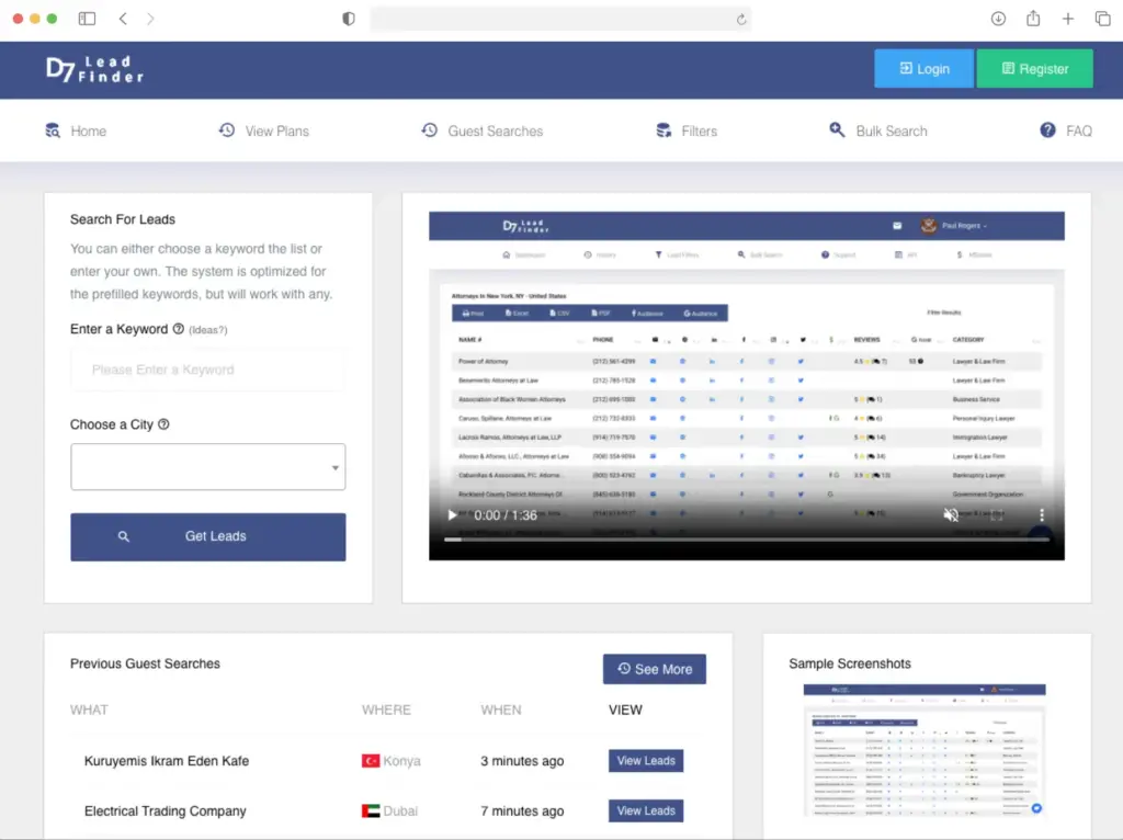 D7 Lead Finder is a B2B lead generation tool that helps businesses find contact details (such as email addresses, websites, and phone numbers) of companies based on keywords, location, and industry. It’s mainly used by small and mid-sized businesses to build targeted prospect lists for outreach campaigns.